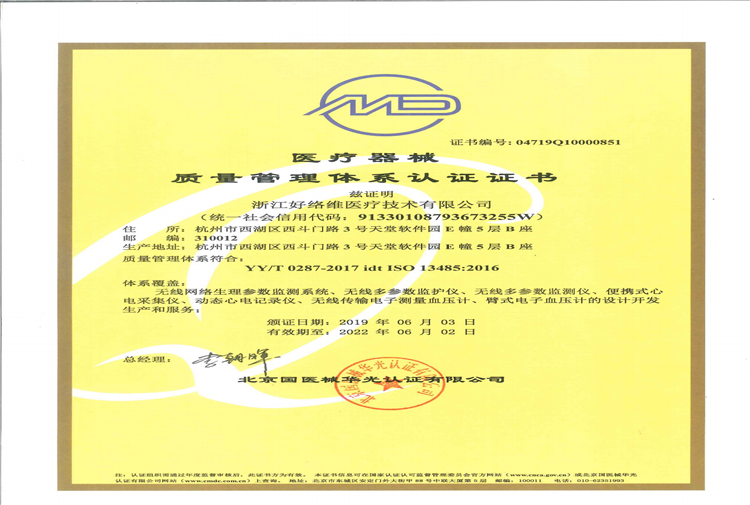 醫療器械質量管理體系認證證書ISO13485:2016